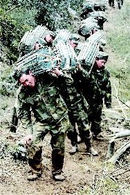 照片:第二炮兵某部官兵正在向山顶运送电信器材。黄云曹繁摄