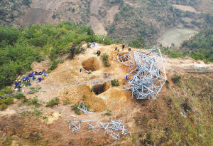 在贵州省,西电东送受损线路70%在独山片区。奋战在这里的2817名年轻人,为了加快工程进度,确保“固主网、保东送”,正在开展劳动竞赛。本报记者 林洁摄