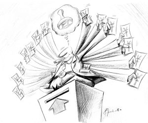 湖南衡阳一私企老板贿选人大代表,一晚上派发280个红包。漫画:徐简