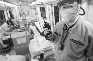 2月18日,北京地铁10号线进行了重车试验,整列车按1800人的体重,用等量的沙袋压车,厂方对各种数据进行了检测。吴宁摄