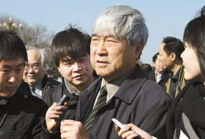 ▲神舟飞船总设计师戚发轫委员接受记者采访。中国载人航天工程一直是人们关注的热点。