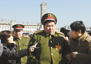 ▲军事科学院研究员毛新宇委员表示,他关注教育和科技方面的问题。