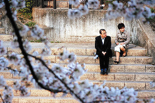 为什么要对樱花花期的预测如此考究呢?因为日本人有一套完整的赏樱文化。从最初的“含苞”到“三分开”、“半开”、“七分开”及至“满开”,每个阶段都有具体的说法。在日语中,有很多与赏樱有关的专门词汇,所谓“樱时”即指樱花盛开的时节,而观赏樱花叫做“花见”。花见的意思是大家不但要欣赏樱花,还要围坐在树下,举杯开怀,共享春光,电影里的那些日本人赏樱时的场景,在现实中确实比比皆是。