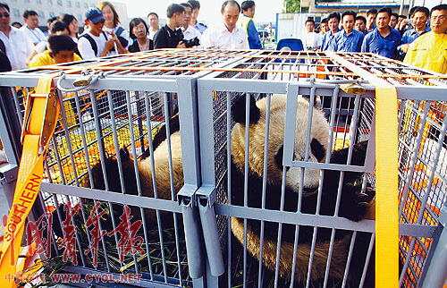 5月24日,经历汶川大地震安然无恙的8只卧龙大熊猫抵京。据悉,它们都出生于2006年,体格强壮、适应能力强。上午10时许,8只大熊猫离开成都乘坐南航提供的恒温机舱专机飞往北京。它们入住北京动物园后,将进行为1~2周的隔离观察,随后与游人见面。 本报记者 刘占坤摄