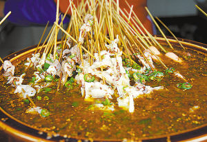 好的食物和新鲜的吃法都是成都小吃吸引人的地方。麻辣烫的小串像小山一样堆积在眼前,用吸管去品尝棒骨中的骨髓……这些有趣的吃法体现了成都人对于“吃”的幽默和对于食物制作的用心。