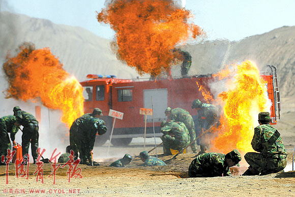 ▲为保证输油管线的安全畅通,管线团的战士们进行管线施工和抢修演练。