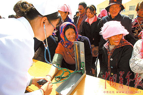 ▲部队医院在“三江源”藏族新村为村民进行义诊。