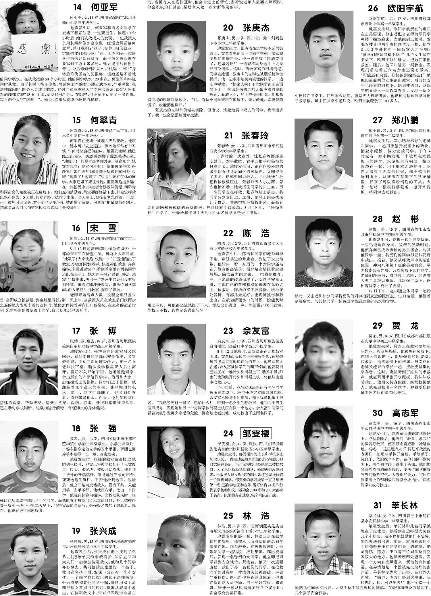 “搞震救灾英雄少年”候选人事迹(二)
