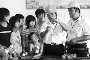 7月6日,河南省永城市陈官庄供电所的农电工在胡庄村委会为留守儿童讲解安全用电常识。为了确保奥运期间农村用电客户能够安全用电,节能用电,河南省永城市供电公司组织全市408农电工深入到737行政村对留守儿童和留守老人进行安全用电知识教育,避免电力的意外伤害。 王勇摄