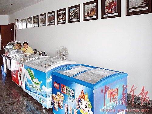 展厅中央空空荡荡,左右两侧墙壁上悬挂着55幅图片,每幅图片都配有简要说明。由于图片高悬,必须仰视,一圈下来,陈先生脖子僵硬而酸疼。而展厅内更引人注目的是展厅旁侧的一排卖冷饮的摊点,其他抗洪纪念物再也难找了。