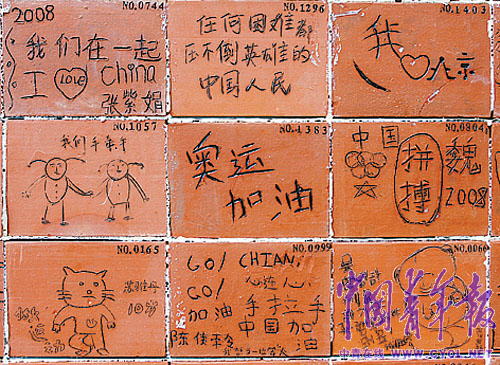 ▲北京动物园熊猫馆内的签名墙上写满奥运祝福。