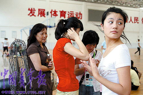▲奥运礼仪小姐的训练在酷暑中进入了最后冲刺阶段。