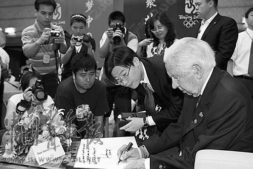 8月16日,国际奥委会名誉主席萨马兰奇先生为《中国青年报》题词。本报记者 赵青摄