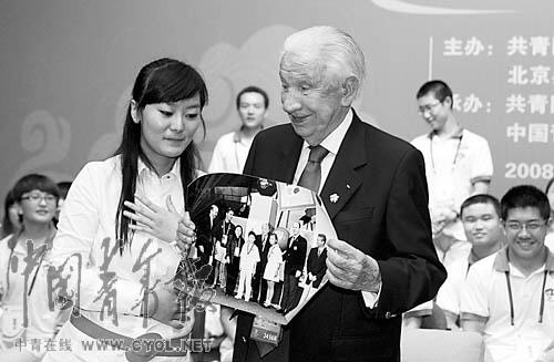 8月16日,赵岳拿出当年与萨马兰奇先生的合影,与萨翁再次相逢。2000年,11岁的四川女孩赵岳获得VISA“畅想奥运”主题绘画活动一等奖,萨马兰奇先生曾在悉尼为她颁奖。过去的8年里,赵岳做了很多有益于奥运会的工作。本报记者 赵青摄