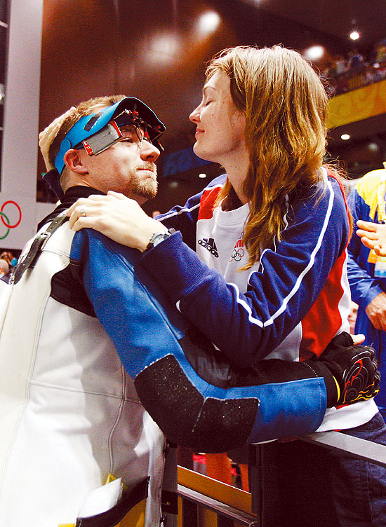 4年前的一幕出其不意地重演,遥遥领先的马修,鬼使神差最后一枪只打出4.4环,无助的他突然脆弱得像个孩子。而卡特琳娜,只愣了几秒就冲下看台,把丈夫拥入怀里,深情地望着自己的爱人,轻轻抹去他眼角的泪。