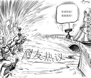 尽管被网友斥责为劳民伤财,但在一片质疑声中,江苏省淮安市的“南北地理分界标志”照样开工修建。漫画:徐简