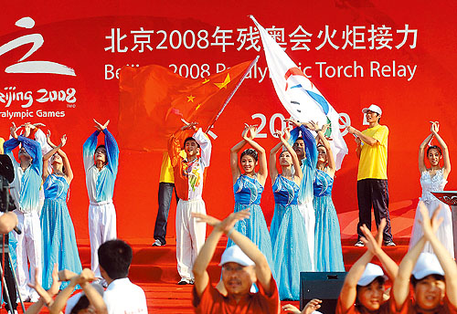 北京市体育局副局长孙学才介绍,残奥会火炬在北京的传递线路选择,集中体现了残奥会“超越、融合、共享”的主题,既包含了中华文明又充分展示了时代风采。中华世纪坛是北京市进入新千禧年的重要建筑,建筑结构和建筑面貌都体现了现代气息。颐和园是重要的皇家园林建筑,也是中华文明的具体体现。而朝阳公园是北京市四环路内最大的公园,里面不仅有健全人能够参与活动的体育设施,还有供残疾人进行康复、运动的体育设施。