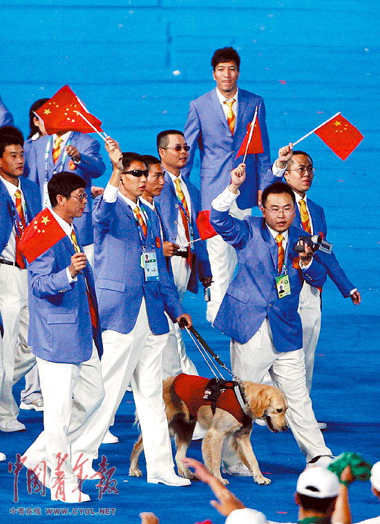 照片:中国残奥会代表团在入场式上。 本报记者 陈剑摄
