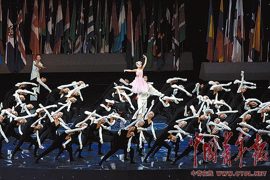 照片:李月在北京残奥会开幕式上表演。 本报记者 贺延光摄