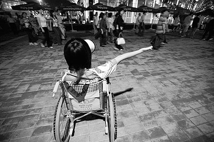 “大家都是一样的,我凭什么要求放宽标准呢?”赵玉明不忌讳同别人谈自己的伤残情况,他摇着头,咧嘴笑,露出两颗小虎牙,“哎,小时候开刀没开好,伤着脊髓神经了,腿就不能动了,所以只能靠摇轮椅了。”曾经是一名体育新闻编辑的他,至今还常在一些轮椅篮球比赛中露脸。
