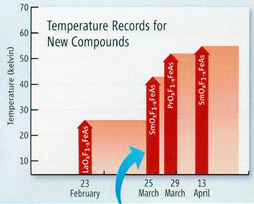 2、在高温超导材料领域取得重要进展,发现了第一个临界温度超过40K的非铜氧化物超导体,相关研究成果发表在2008年5月的Nature上。