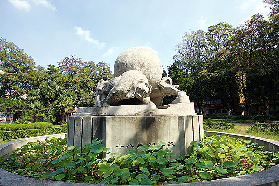 1961年5月1日,学校召开庆祝国际劳动节大会。校长郭沫若与党委书记郁文以及副校长华罗庚等席地而坐,与同学们一起观看学生文艺演出。