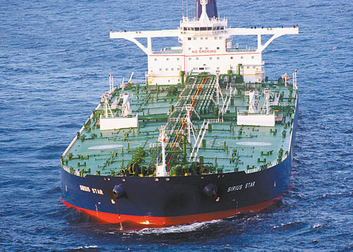 19日,被海盗劫持的沙特阿拉伯“天狼星”号巨型油轮停在索马里东北部海面上。联合国秘书长潘基文当日发表声明,对索马里附近海域日益猖獗的海盗活动表示关注,呼吁国际社会协调一致,加大打击力度。