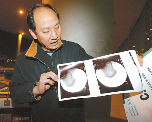 11月6日,孙海平向媒体展示刘翔在美国会诊时所拍伤处的片子。
