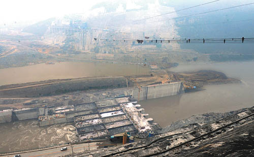 12月28 日上午11 时26分,随着最后一车渣土倒入向家坝水电站大江合龙龙口中,中国第三大水电工程—向家坝水电站成功实现大江截流。向家坝水电站是列入国家“十一五”规划纲要,于“十一五”期间开工的第一座巨型水电站,是继三峡工程、溪洛渡水电站之后我国在建的第三大水电站,也是我国“西电东送”的骨干电源点。图为12月27日拍摄的向家坝水电站工程全貌。