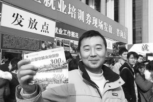 1月12日,在成都市劳动保障部门举办的主题为“就业社保你我他,真情相助渡难关”的“2009新春就业社保送温暖活动”中,现场向315人集中发放了人均500元、共计15.75万元的就业培训券。据悉,春节前全市还将向2360余人发放价值118万元的就业培训券。CFP供图