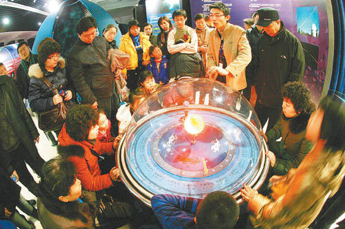 1月30日,志愿者给观众讲解日月食天象。春节期间,北京天文馆推出丰富多彩的活动,吸引了许多天文爱好者前来参观、学习,充实节日生活。
