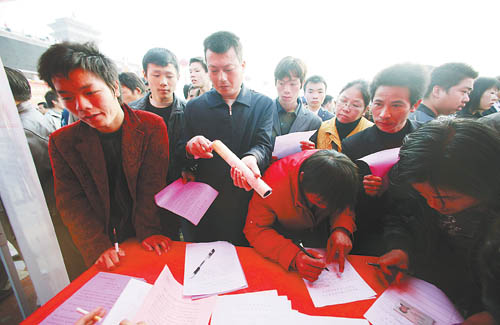 2月2日,江西赣州市在黄金广场举行万人返乡农民工招聘大会,共有300多家企业提供岗位3万多个。据悉,春节前后赣州返乡农民工达40万人。