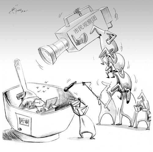 节后上班第一天,江苏扬州一民间团体市民观察团,派出6个小组91名团员,挂着工作牌、带着摄像机来到城区各级政府门前,专门“聚焦”上班迟到者。(《扬子晚报》2月2日)