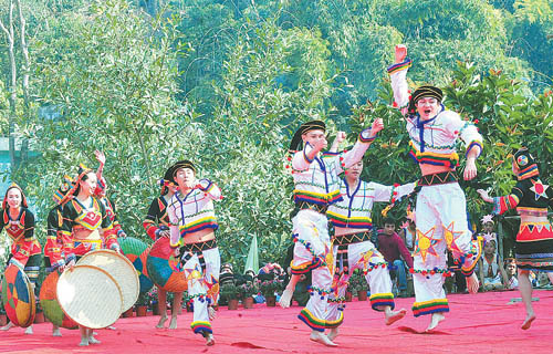 2月6日,乡村演员表演基诺族原生态舞蹈。
