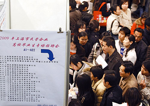 当日,“2009年上海市民营企业高校毕业生专场招聘会”在上海市人才服务中心举行,120余家民营企业为应届高校毕业生提供了行政、人事、建筑、房产、IT等各类岗位1600余个。 新华社记者 刘颖摄