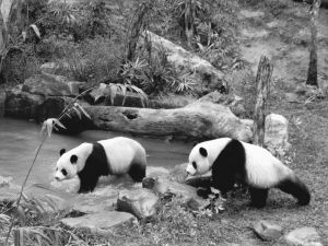 当日,赠台大熊猫“团团”、“圆圆”首次户外公开亮相。“团团”、“圆圆”于2008年12月来到台北市立动物园,并在2009年1月26日正式与台湾民众见面。 新华社记者 王妍摄