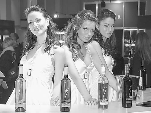 在保加利亚城市普罗夫迪夫举行的葡萄酒国际博览会上,美丽的保加利亚姑娘向来宾推介葡萄酒。第17届葡萄酒国际博览会3月18日在这里的国际会展中心拉开帷幕,来自19个国家的313家葡萄酒公司参展。本届博览会为期4天,21日闭幕,总共评出157个奖项。