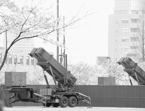 4月4日,改进型“爱国者”拦截导弹发射器被部署在位于日本东京的防卫省总部。据朝鲜中央通讯社(朝中社)当日报道,朝鲜发射卫星的准备工作已经完毕,卫星马上就要发射。日本此前曾表示,将“摧毁”可能落入日本境内的发射物。