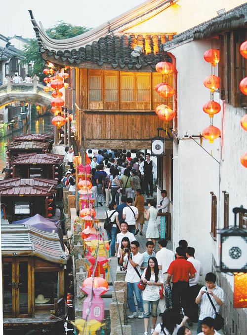 5月28日晚,众多游人在姑苏古山塘观赏夜景。端午小长假期间,各地发挥特色优势,充分挖掘和弘扬民俗文化,推出风情文化旅游“盛宴”,迎来众多海内外游客。