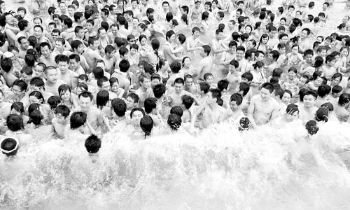7月10日,武汉最高气温达36.8摄氏度,酷热难耐的人们采取各种方法避暑。在武汉市青少年宫水上乐园,2000多人来此嬉水消暑,创该园今年入夏以来人数最高峰。