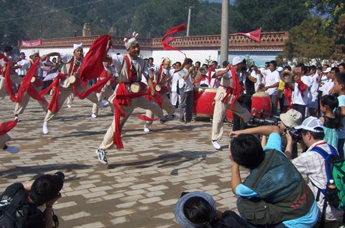 陕西省延安市安塞县沿河湾镇茶坊村,22岁的李海江(图中)等年轻人在练习腰鼓。作为国家级非物质文化遗产,安塞腰鼓在当地代代相传。中国青年报记者 张国 摄