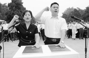 当日,南京举行公推直选社区党组织书记任职承诺大会,363名在公推直选中新当选的社区党组织书记在南京雨花台烈士陵园进行集体宣誓,并作出任职承诺。 新华社记者 韩瑜庆摄