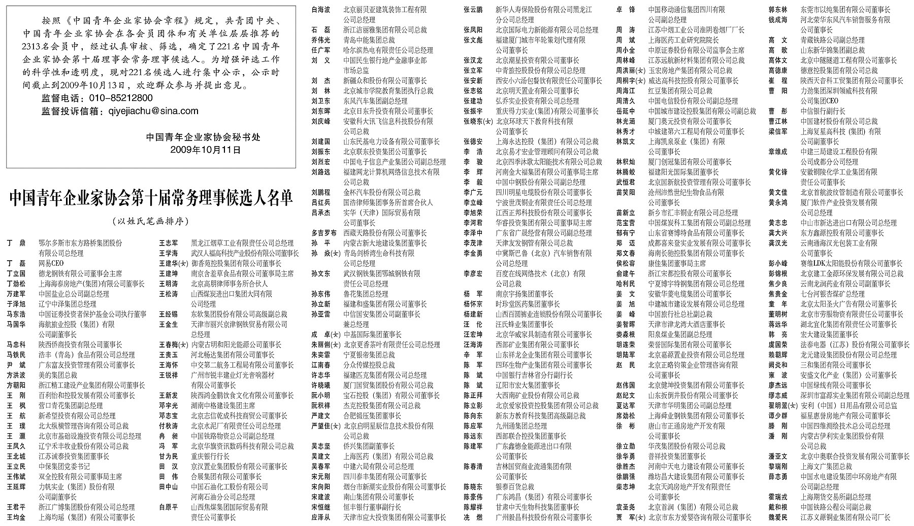 中国青年企业家协会第十届理事会常务理事候选人公示