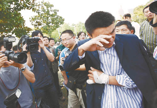 10月26日,事件当事人孙中界(前右)得知处理结果后激动不已。