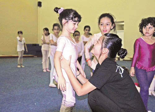 11月5日,在突尼斯首都突尼斯城中国援建的突尼斯青体文化中心,舞蹈老师、中国青年志愿者庞艺婷在舞蹈课后与突尼斯儿童交谈。