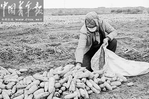 兴武营是盐池两道长城的会合点,是明长城上昔日的军事重地。如今,城墙和城门的外围包砖已经被全部拆走,但是整个夯土墙依然高大,四面城墙也很完整。城墙外,有些黄土地已经在毛乌素沙漠的影响下迅速沙化。堡子里像一个巨大的足球场,两平方公里一览无余的空地完全成了庄稼地。地里只有一位戴着白口罩、包着花格头巾的老妇,正半蹲着收萝卜。这里地处沙漠边缘的风沙区,土地沙化严重。女人们特别爱围那种鲜红的头巾。