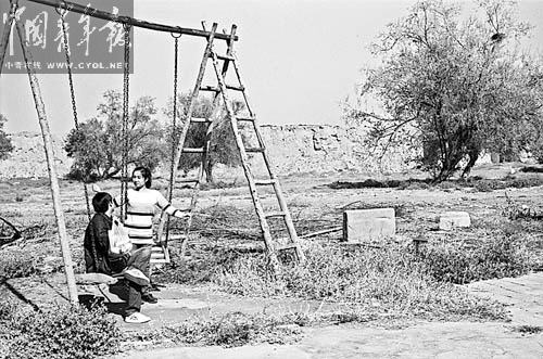 宁夏灵武横城堡,一对年轻人在秋千旁私语。这里是明长城重要的兵屯重镇和黄河军事渡口,作为影视基地曾拍摄西夏历史剧,但总是游客寥寥。