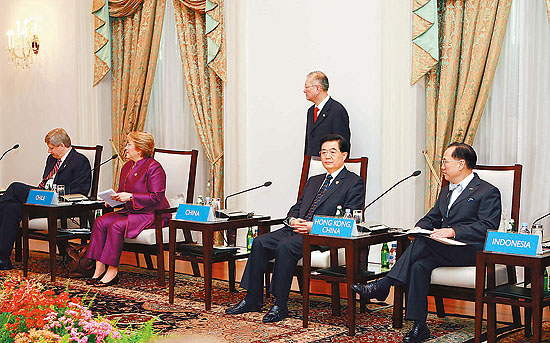 会后,胡锦涛出席了《促进持续增长,密切区域联系——亚太经合组织第十七次领导人非正式会议宣言》宣读仪式。