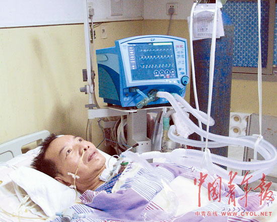 张在元患上了罕见的运动神经元病。不能说话,也不能进食,甚至无法呼吸。于是几根白色的塑料管从蓝色的呼吸机里伸出来,高高地吊起,插进开胸后的气管,成为支持他呼吸的唯一方式。