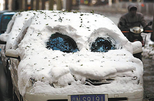 11 月10 日,北京迎来今年第二场大雪,一辆汽车上的“囧”字涂鸦,吸引不少路人的目光。“囧”是一个生僻字,其外观貌似失意的表情,夸张地表现出无奈的意思,近年来在互联网上迅速流行。连日来,我国从北到南普降大雪,雨雪给人们生活带来不便,也考验着政府的应急能力。